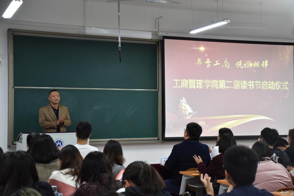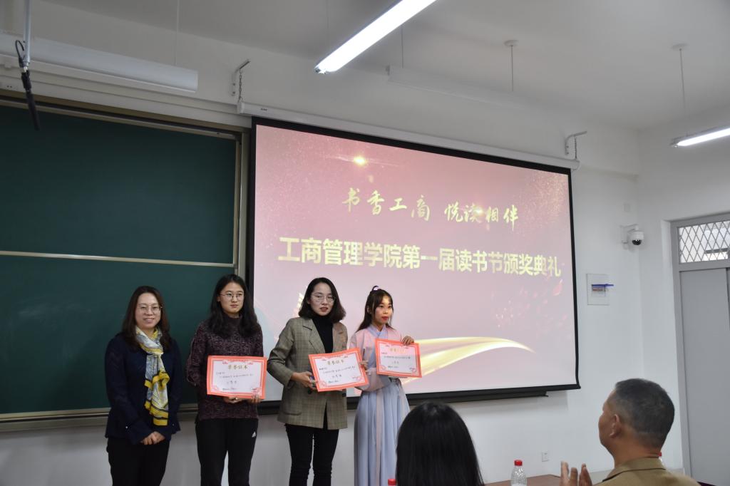 11月7日下午,“书香工商 悦读相伴”tyc7111太阳成集团第一届读书节颁奖典礼暨第二届读书节启动仪式在圣井校区8310教室举行。学院党委书记李旭刚、党委副书记张红燕、就业办主任刘薇,2017级辅导员尤泽民出席活动并担任评委。学院2018、2019级近100余名热爱读书的同学参加了此次活动。