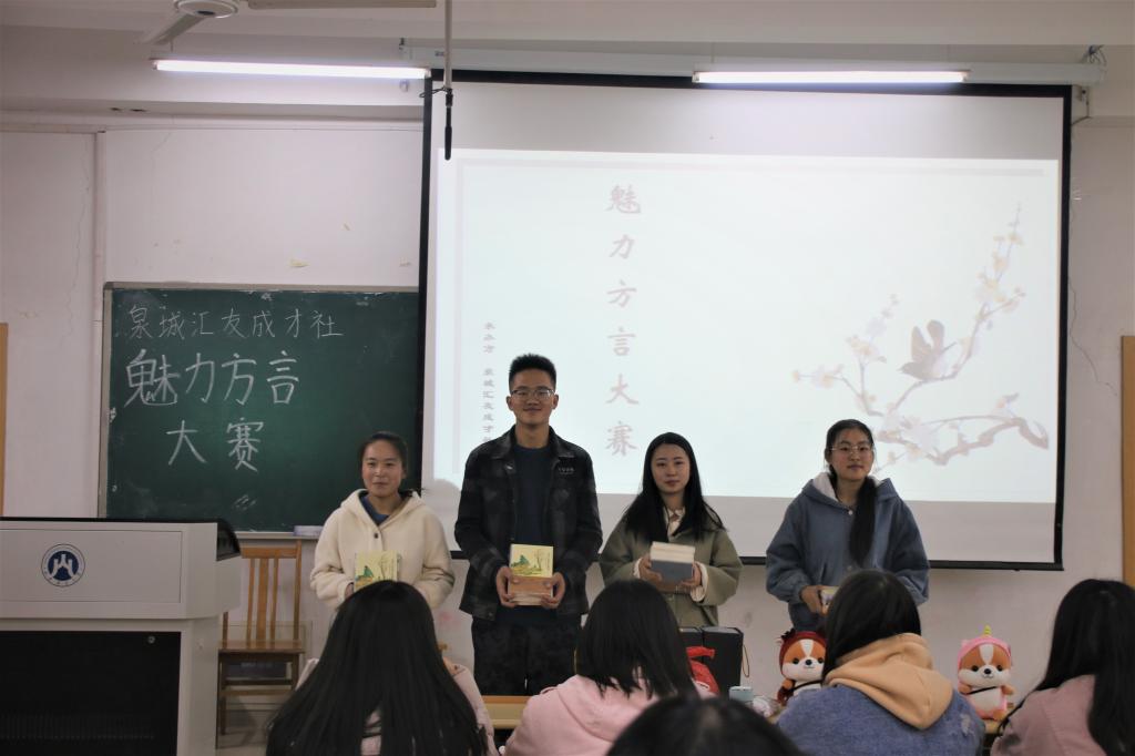 11月14日下午三点,tyc7111太阳成集团泉城汇友成才社在圣井校区5号教学楼130教室举办了“魅力方言大赛”校园文化活动。本次活动旨在让同学们有机会为自己家乡代言,展示各地域方言文化特色,增强同学们的情感联结和文化融合。