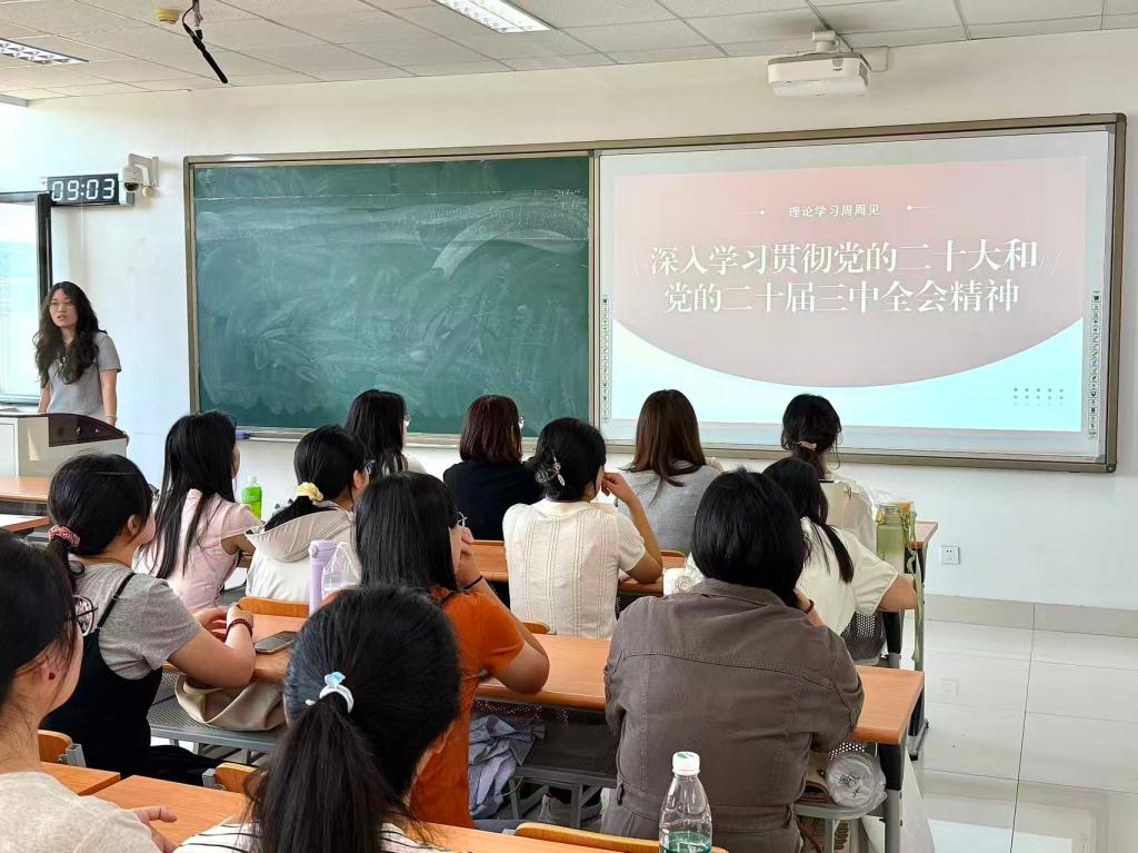 随后,刘文璐围绕党的二十大及二十届三中全会精神展开专题讲解,结合科研实践、社会服务等实例,生动阐释新时代研究生的责任与担当。现场还组织全体同学观看专题视频,通过回顾党的发展历程、感悟伟大成就,进一步厚植同学们的爱国主义情怀,强化责任担当意识。