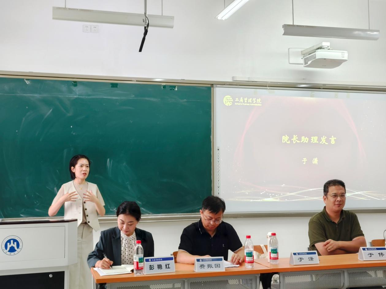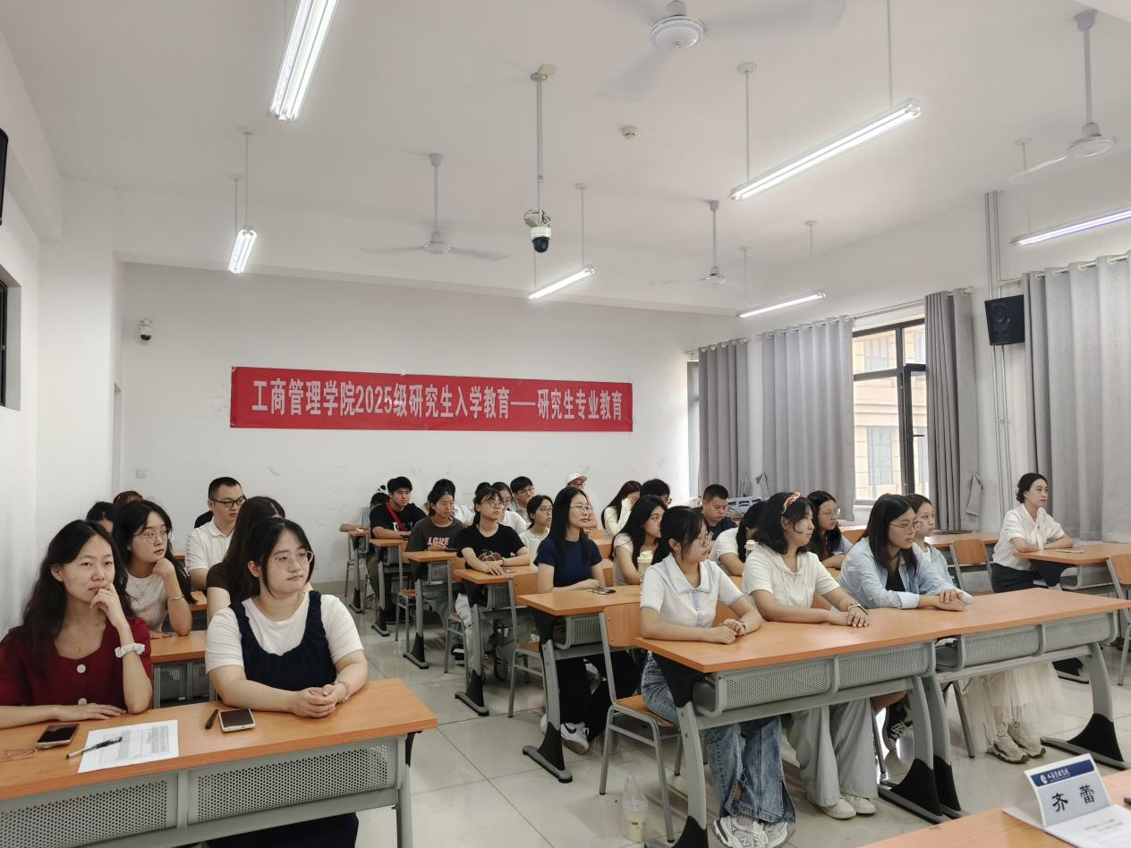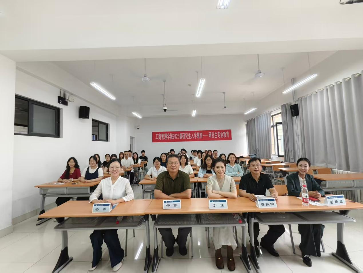 9月5日上午,我院在章丘校区8303教室开展2025级研究生专业教育。学院党委副书记彭艳红,院长助理于潇,工商管理系主任、教学发展中心主任费振国,文化和旅游系主任于伟及人力党支部副书记、科研发展中心主任齐蕾出席。活动由彭艳红主持,2025级全体研究生参加。