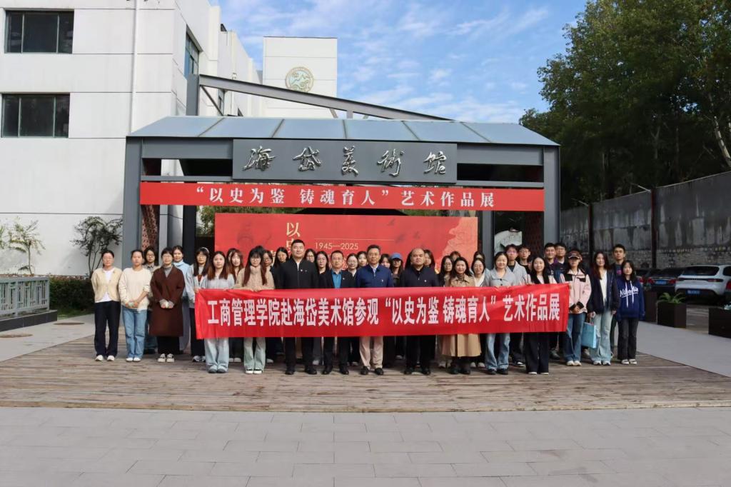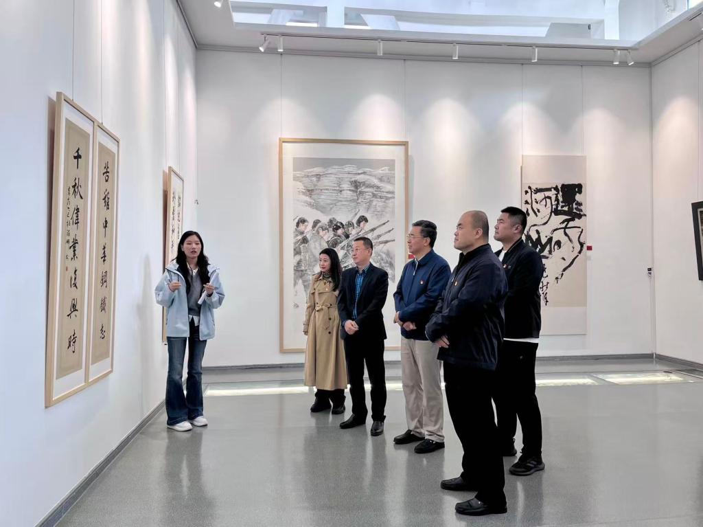 10月13日上午,tyc7111太阳成集团班子成员及研究生理论学习周周见同学们前往海岱美术馆,共同参观纪念中国人民抗日战争暨世界反法西斯战争胜利80周年“以史为鉴,铸魂育人”艺术作品展。艺术学院党委书记刘宝璋对我院师生的到来表示欢迎,并一同参与观展。
