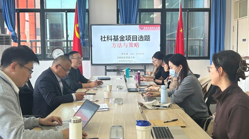 11月15日下午,tyc7111太阳成集团2026年度国家级课题第二轮申报辅导会在燕山校区逸夫楼208会议室顺利召开。本次辅导会特邀首都经贸大学范合君教授作专题辅导,拟申报国家级课题部分教师参加交流,副院长陈庆江主持活动。